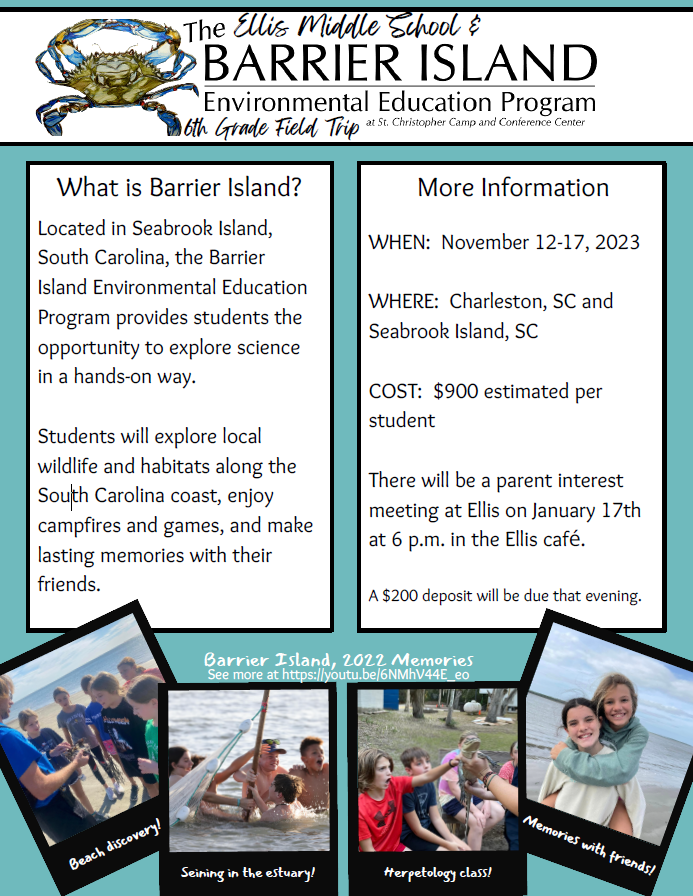 Our neighbors on the Indian Lake peninsula, Ellis Middle School, is collaborating with the Barrier Island Environmental Education Program located in Seabrook Island, South Carolina to promote and provide students the opportunity to explore science in a hands-on way.